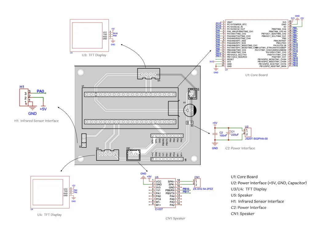 A microcontroller—Arduino or STM32—coordinates the entire interaction flow, integrating proximity sensors to detect hand movements and trigger evasive behaviors. Capacitive or infrared sensors are used to anticipate user intent, while embedded timers and logic structures generate delays, conditional paths, and false feedback loops.
